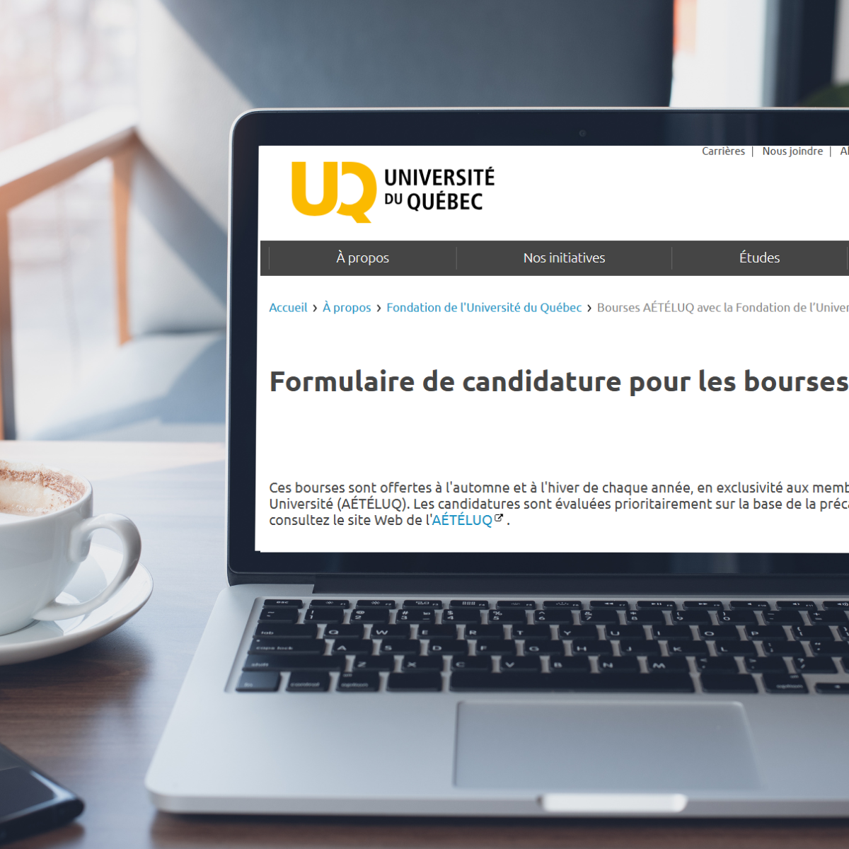 Il est possible de faire une demande de bourses de l’AÉTÉLUQ et de la Fondation de l’Université du Québec.